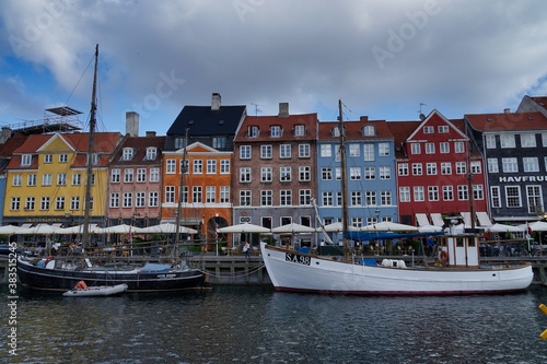 Fototapeta premium Copenhagen, Europe, colored houses in Nyhavn, promenade, front