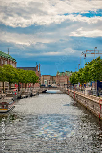 Obraz premium Copenhagen, the capital of Denmark, is located on the offshore islands of Zealand and Amager. It is connected to Malmo in southern Sweden via the Öresund Bridge.