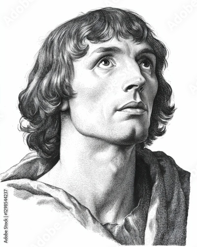 © Maryna, Obraz premium Copernicus. Nicolaus Copernicus Face. Editorial Drawing of a Famous Astronomer