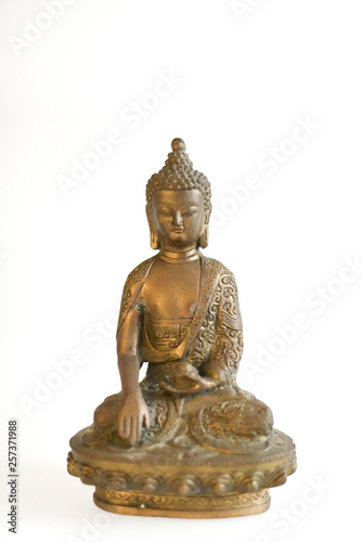 © Helen Kosareva, Fototapeta premium Copper Buddha on a white background