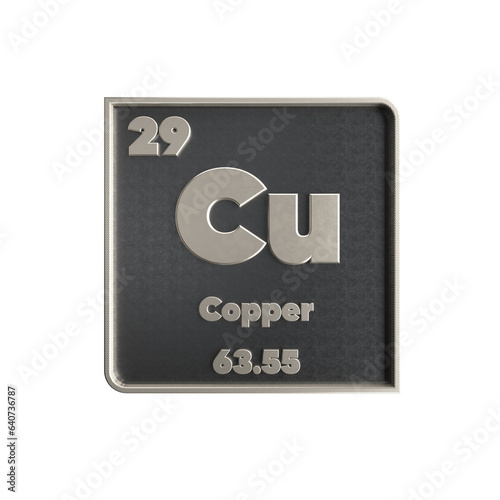 Obraz premium copper chemical element black and metal icon with atomic mass and atomic number. 3d render illustration.