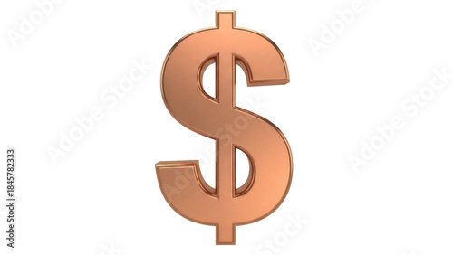 © Jn, Fototapeta premium Copper dollar sign isolated PNG on transparent background, currency symbol for finance and business