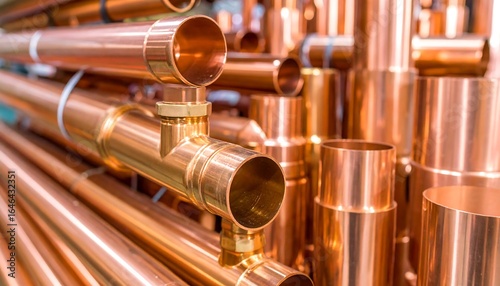 © Mutiara, Naklejka premium Copper pipes with industrial warehouse.