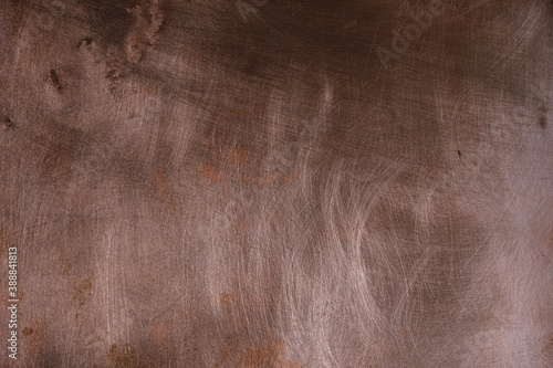 Fototapeta premium Copper plate with scratches and mechanical defects. Copy space.