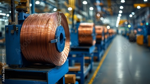 © Bandaro, Obraz premium Copper Wire Spools in Manufacturing Facility