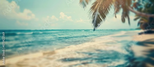 Fototapeta premium Copy space image of a vintage blue-toned blurred tropical beach background, creating a summer vibe for a travel and adventure concept.