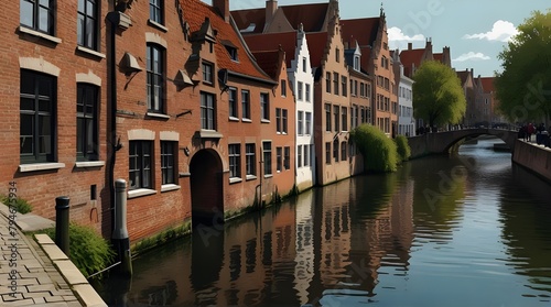 Fototapeta premium copy space, simple vector illustration, typical view of the canals in Bruges, Belgium. hand drawn, view of the typical canals in the city centre of Bruges, Belgium. Famous touristic spot.generative.ai