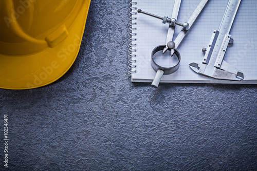 Naklejka premium Copybook hard hat divider vernier scale construction concept