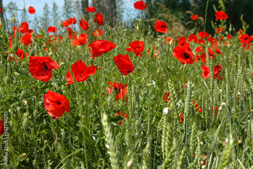 © Anthony SEJOURNE, Fototapeta premium Coquelicots champ de blé