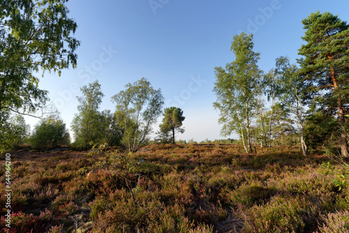 © hassan bensliman, Fototapeta premium Coquibus heather land in Fontainebleau forest