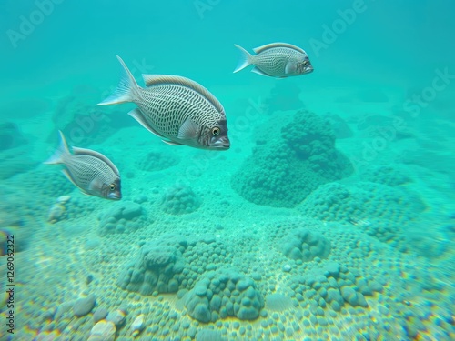 Fototapeta premium Coquinas donax trunculus swimming freely in the ocean, shellfish, ocean,...