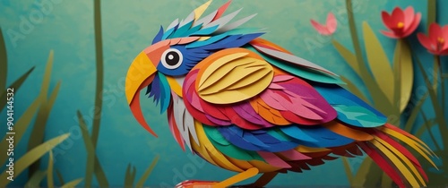 © DEER FLUFFY, Fototapeta premium Coraciiformes with colorful feathers holding a fish with its beak on a blurred background.