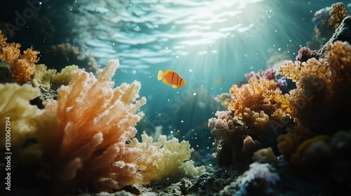 © Lilit, Obraz premium coral blue water background, underwater life, underwater scenery, blue water background