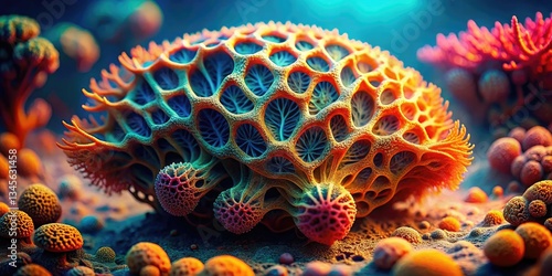 © dokrak, Obraz premium Coral Fossil Crystal Architecture: Roe Spots Texture, Generative AI Photo