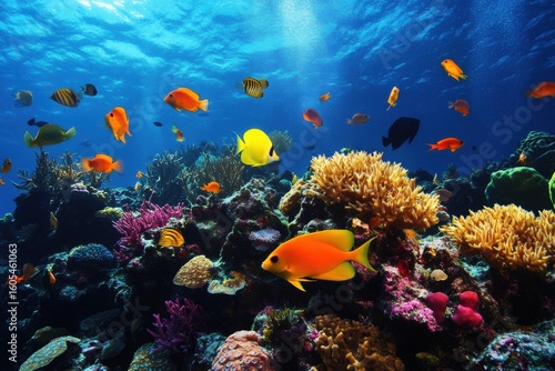 © Dimass, Naklejka premium Coral garden with orange and yellow fish