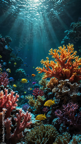 © sevenSkies, Obraz premium coral gardens bursting with color deep underwater background