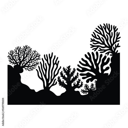 © MdAkram, Naklejka premium Coral Infographic Silhouette, Vector, Illustration, Outline, Line Art, Icon, Logo, White Background.