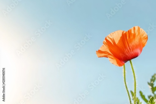 © snezhkina, Obraz premium Coral poppies against pastel blue