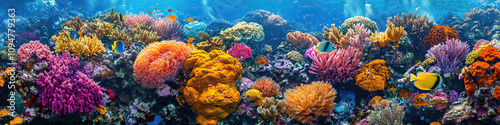 Fototapeta premium Coral Reef Canvas: Vibrant marine life adorning an underwater paradise