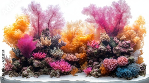 © sa-photo, Obraz premium Coral reef ecosystem on white background