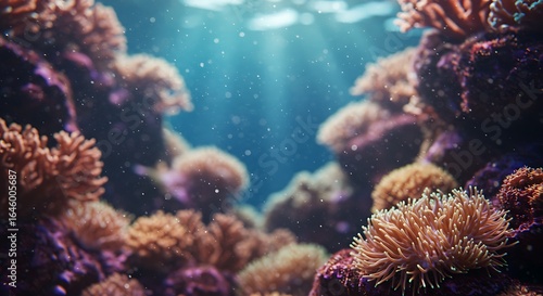 © Nur, Fototapeta premium Coral Reef Ecosystem Underwater Scene with Sunlight