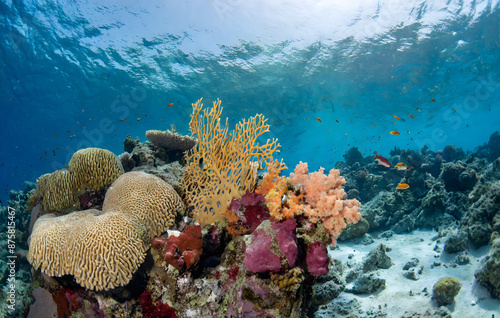 © hanifa, Fototapeta premium Coral reef in Carbiiean Sea. Generative AI.