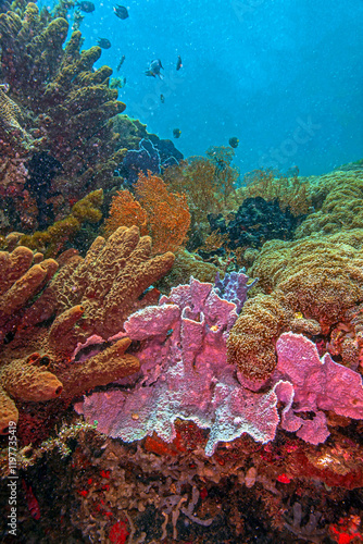 Fototapeta premium Coral reef in South Pacific, Indonesia, North Sulawesi