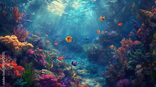 © Dharminder, Naklejka premium coral reef in the blue sea
