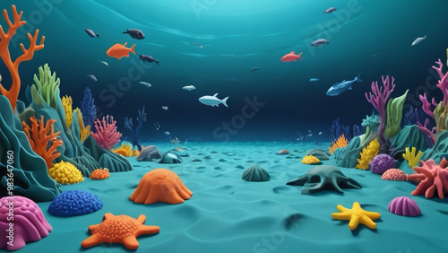 © KawaiiBear Studio​, Naklejka premium coral reef in the sea