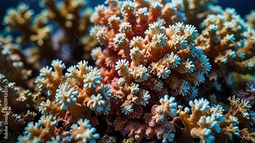 Fototapeta premium Coral Reef Macro: Textured Abstract View of a Marine Ecosystem