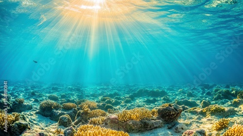 Naklejka premium Coral Reef Under Bright Sunlight and Polluted Waters
