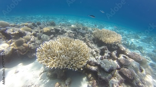 Naklejka premium Coral Reef Underwater Scene with Tropical Fish