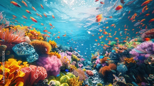 Naklejka premium Coral reefs with augmented reality marine conservation data