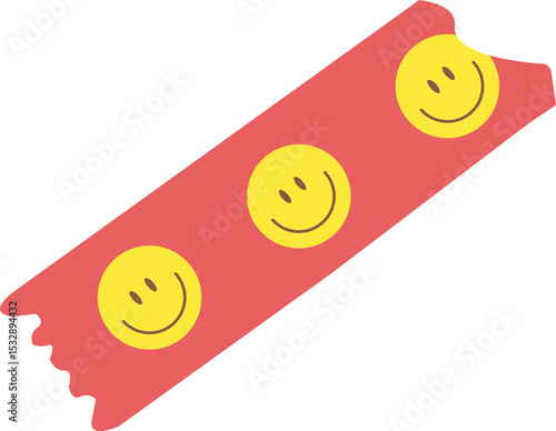 Obraz premium Coral ribbon banner is showing three yellow smiley faces on diagonal, flat transparent background