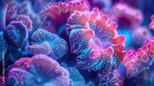 © Dvid, Fototapeta premium Coral, sea coral reef texture, background. Generative AI