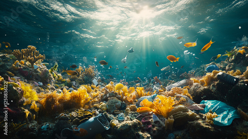 © Stellar, Fototapeta premium Coral with only trash surrounding it It's a bad underwater environment.