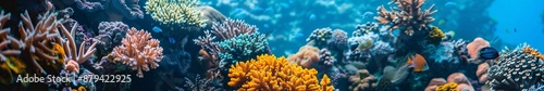 © Yahor Shylau , Obraz premium corals on the seabed widescreen background.
