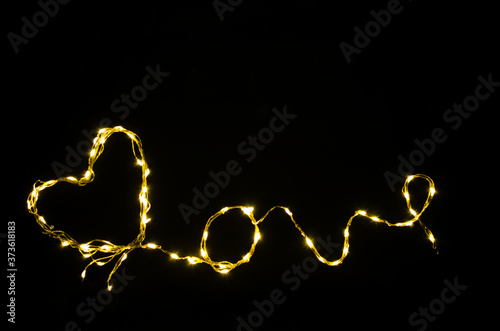 Fototapeta premium Corazón hecho con luces led sobre fondo negro. Fondo, superposición para...