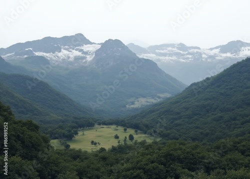 © Anarkali Art, Fototapeta premium Cordillera Blanca at Midday with Vivid Green and White Tones