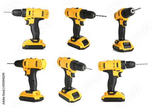 Fototapeta premium Cordless drill isolated on white, views from different sides