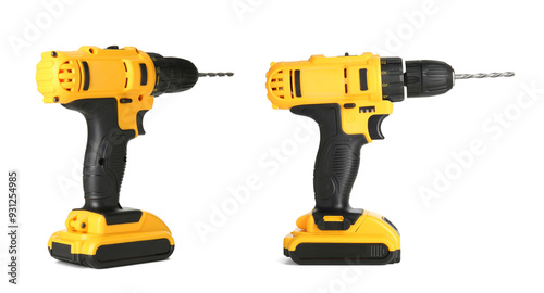 Fototapeta premium Cordless drill isolated on white, views from different sides