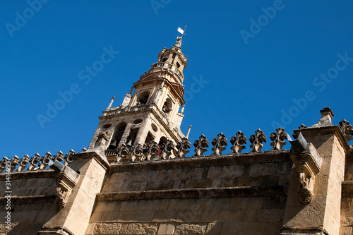 Fototapeta premium Cordoba Spain, looking up at the Mosque-cathedral bell tower