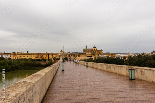 © An Instant of Time, Fototapeta premium Cordoba, Spain, September 13, 2021: Guadalquivir River and the Roman Bridge, with Cordoba Mosque-Cathedral in the background.