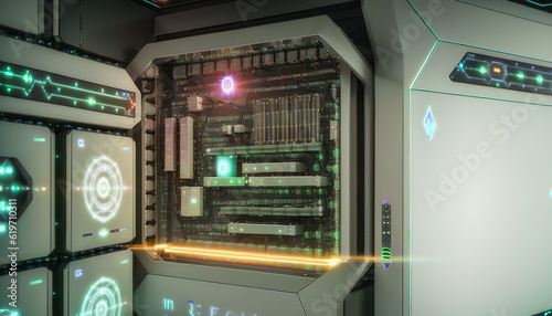 Obraz premium Core of a modern quantum computer, innovative technology, processor,...