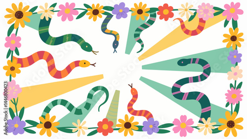 © chenchen, Obraz premium coreopsis tinctoria pattern, flower vector pattern surrounds the border.