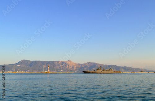 © Peter, Naklejka premium Corfu harbour EU Naval Force flagship, FS Siroco