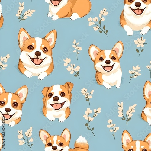 © Seamless, Obraz premium Corgi-dog with seamless pattern