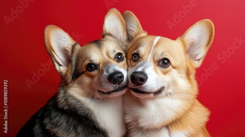 © MKS, Obraz premium Corgis in Love: A Funny Date Night on February 14th