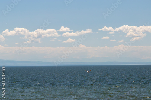 © Olga Shuklina, Obraz premium Cormorants and gulls fly over the lake Zaisan