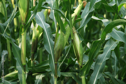© somchai, Obraz premium Corn farm. corn field with corn flower blooming